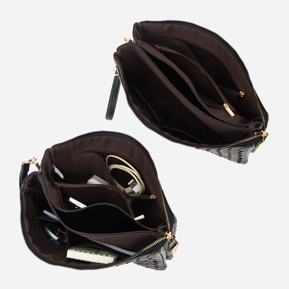 Ivory faux leather braided crossbody bag that doubles as a clutch. Stylish, versatile, and perfect for carrying essentials from day to night.